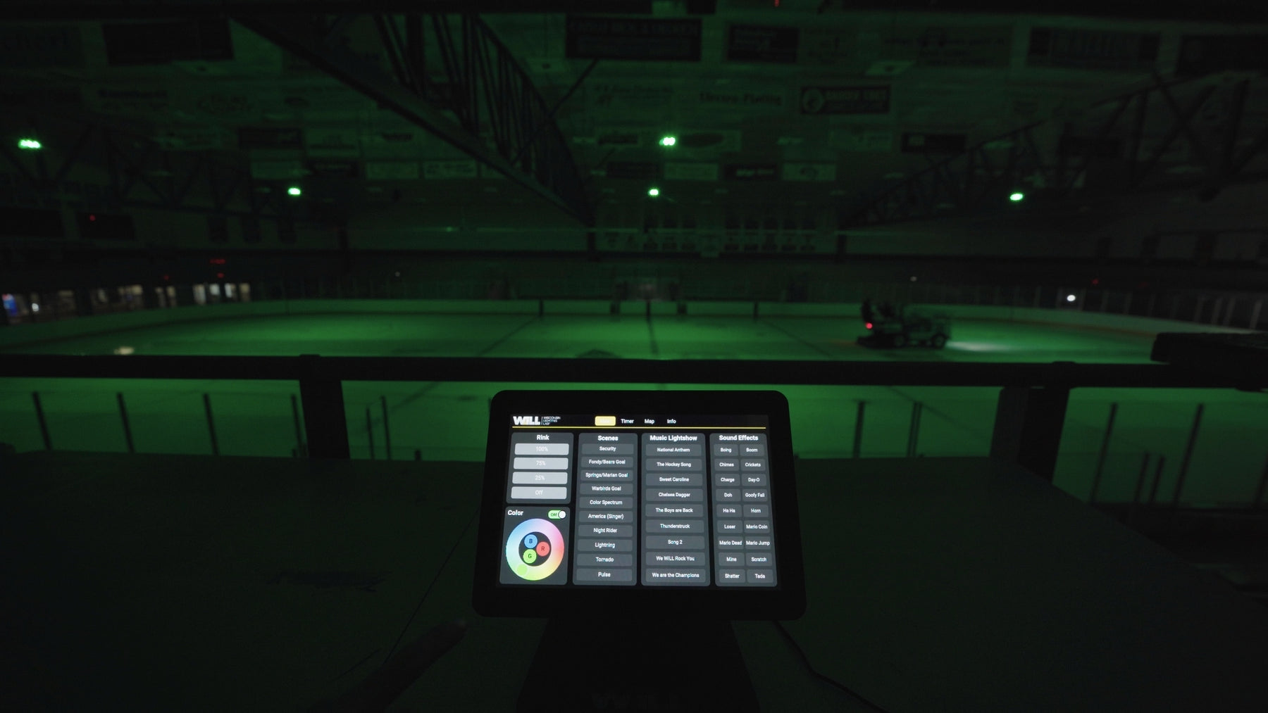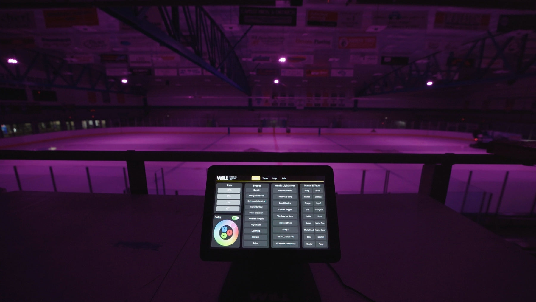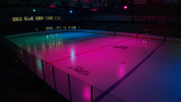 The new lighting at Blue Line Ice Center creates an upgraded, state-of-the-art ice facility with dynamic RGB color-changing lights and high-quality white lighting.