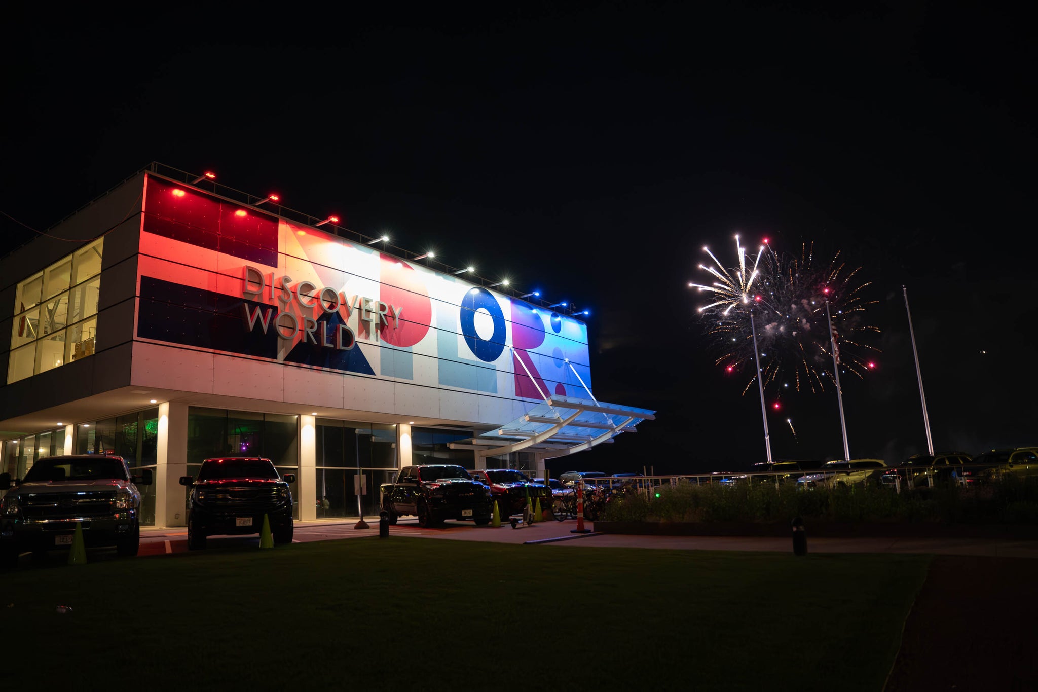 Elevating Discovery World's Exterior with Willstudio™ Dynamic Color-Changing Facade Lighting and WiLLcloud® Wireless Controls.