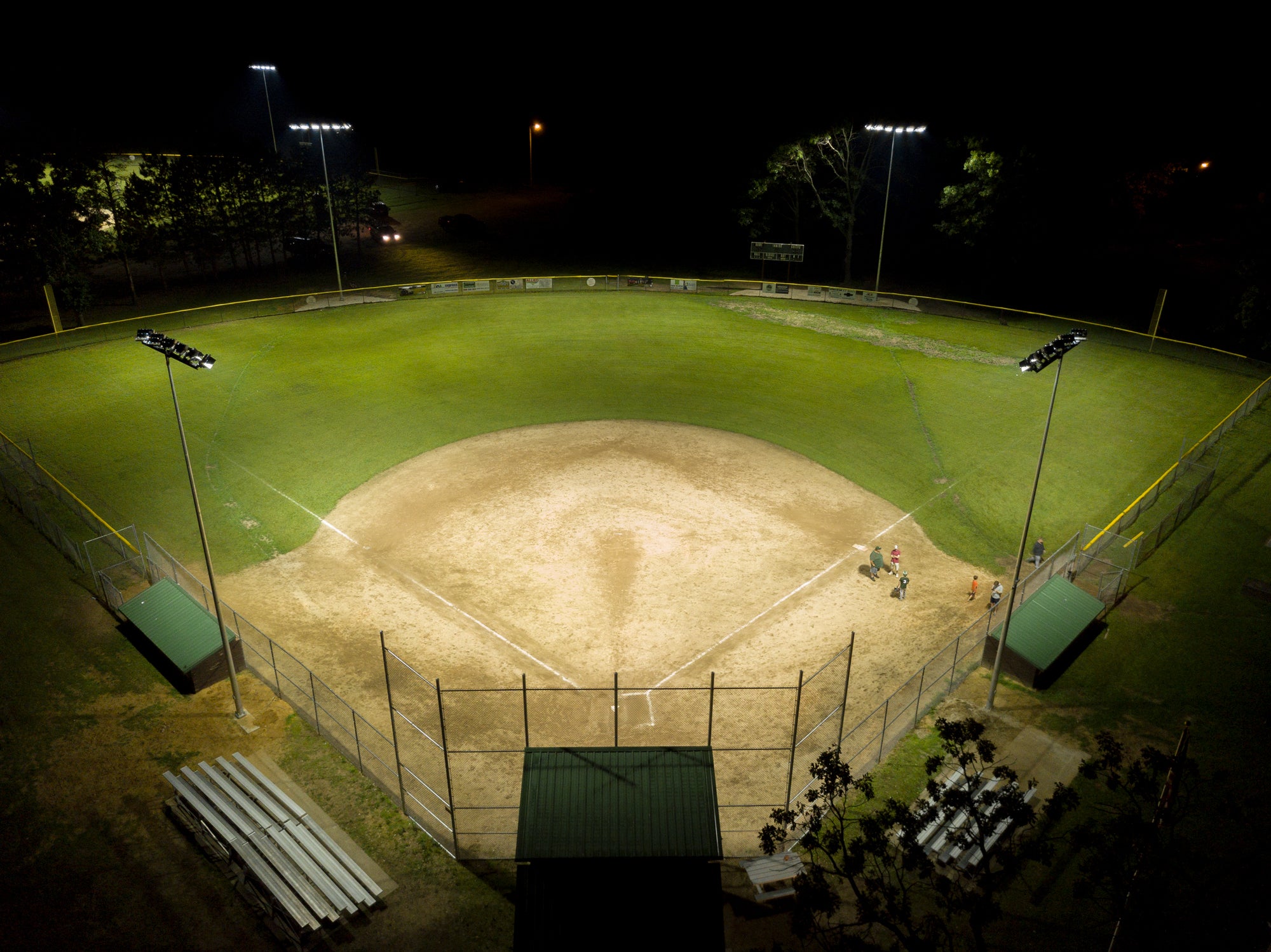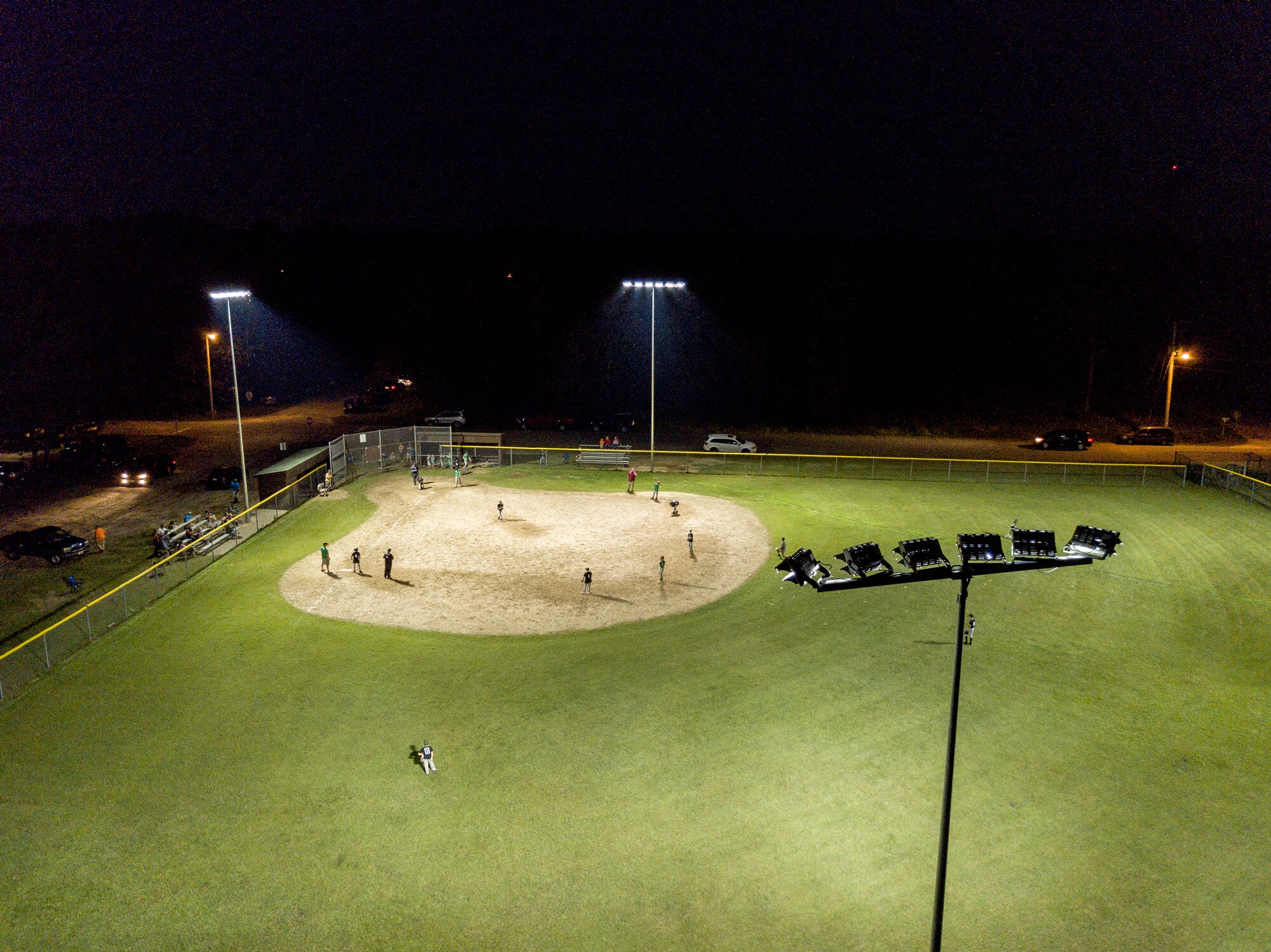 The small town of Adams received a generous donation from Burt Morris to upgrade the community park, including new lighting for the baseball diamonds. With this funding, the city was able to light all three baseball fields to meet Little League's 50/30 foot-candle standards while staying within their target budget. Now, baseball and softball teams can enjoy playing under bright lights into the evening hours.