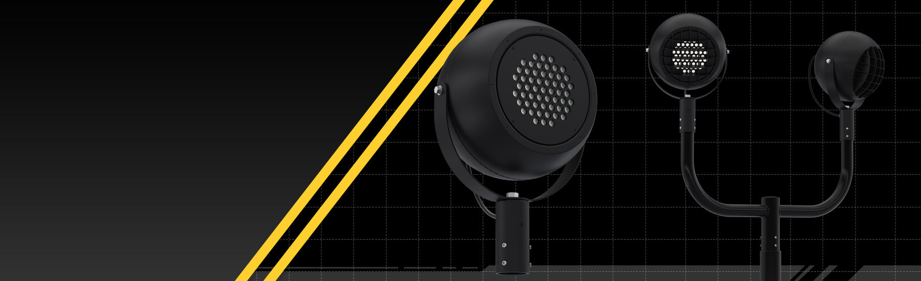 Modern form, modern tech. Versatile exterior architectural LED flood/spot for pole, wall, and ground-mounted uplighting applications.